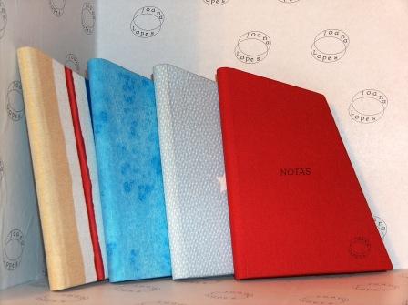 Forrado em veludo. Pautados e lisos. Cores: Castanho escuro, Castanho claro, Mostarda, Vermelho, Rosa velho, Verde água, Grenat, Lilás. |