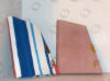 Forrado em veludo. Pautados e lisos. Cores: Castanho escuro, Castanho claro, Mostarda, Vermelho, Rosa velho, Verde água, Grenat, Lilás. |