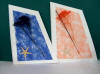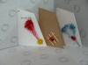 A capa destes postais tem um tule colado na capa. Por cima do tule encontra-se um incenso e um ramo de flor seca ambos da cor do tule. No canto inferior esquerdo encontra-se uma estrela do mar. No interior tem um pensamento com fundo da cor do tule exterior. Cores disponíveis: Azul, Laranja, Verde, Vermelho. |