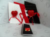 Molduras com pequenos corações de vidro (brancos ou vermelhos), corações vermelhos lisos ou corações vermelhos com pintas brancas. Todas as molduras são acompanhadas de um pequeno caderno de pensamentos no qual as últimas páginas são deixadas em branco para que possa completar com os seus próprios pensamentos e desta forma imprimir um toque muito pessoal à sua oferta. O caderno com pensamentos encontra-se fixado no exterior das molduras. O postal é fechado com uma fita de cetim branca ou vermelha. Cores disponíveis: Vermelho, Branco, Preto. | |