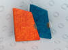 Forrado com papel com relevo e toque incomparável. Cores: Laranja, Vermelho, Verde, Azul, Castanho. |