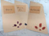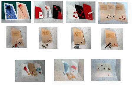 A capa destes postais tem um tule colado na capa. Por cima do tule encontra-se um incenso e um ramo de flor seca ambos da cor do tule. No canto inferior esquerdo encontra-se uma estrela do mar. No interior tem um pensamento com fundo da cor do tule exterior. Cores disponíveis: Azul, Laranja, Verde, Vermelho. |