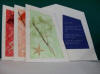 A simplicidade da criação aliada a um pensamento profundo num postal grande, para um dia da maior importância... A capa destes postais tem um tule colado na capa. Por cima do tule encontra-se um incenso e um ramo de flor seca ambos da cor do tule. No canto inferior esquerdo encontra-se uma estrela do mar. No interior tem um pensamento com fundo da cor do tule exterior. Cores disponíveis: Azul, Laranja, Verde, Vermelho. |